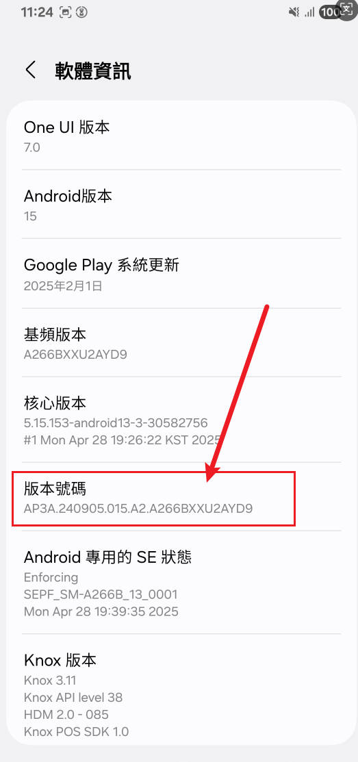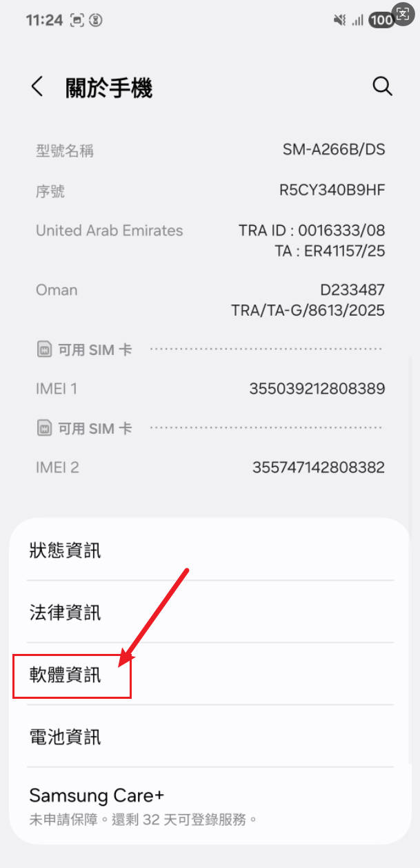 - 進入關於手機頁面後,找到並點選 「軟體資訊」。